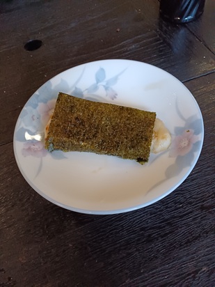 | Apply while baking. | It's misshapen but edible. | Wrap it in seaweed and it's done |