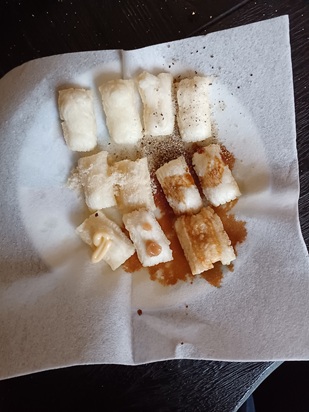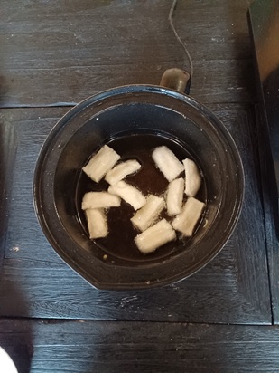 | Fry in oil. | I'll try it with sugar, salt, pepper, brown sugar syrup, and mayonnaise. I can't taste it anymore. |
