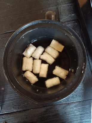 | Bake the mochi in the heater | Add the soup base | |||