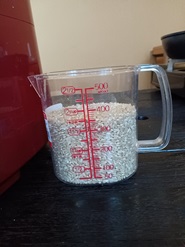 There is brown rice Standard 1 meal 90ml x 2 times x 2 people = 360ml. |