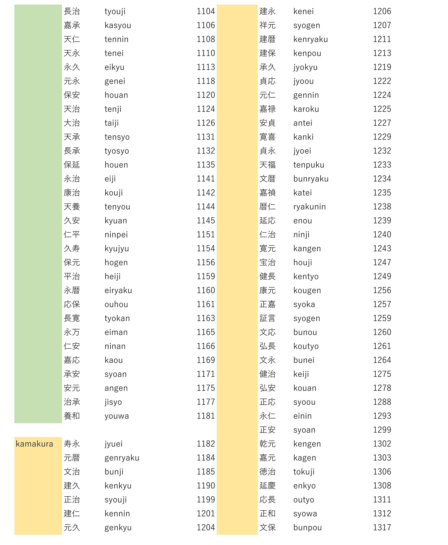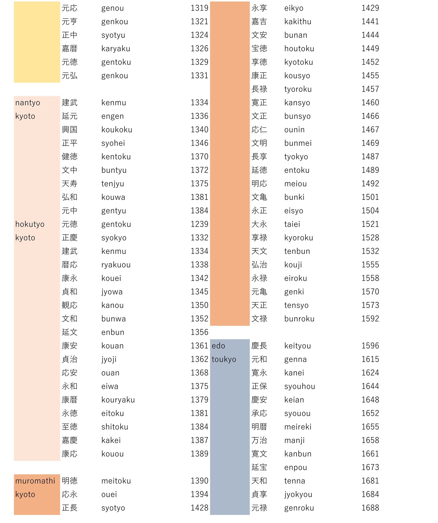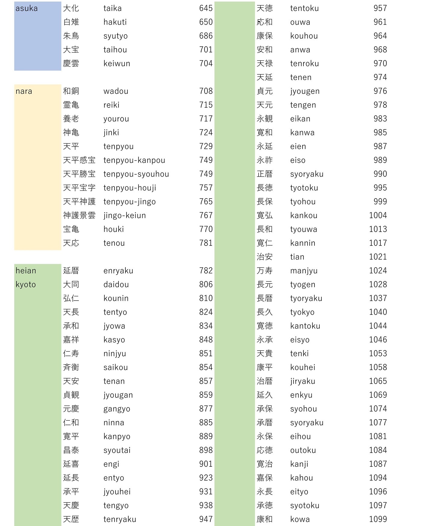 Japanese calendar to Western calendar conversion table